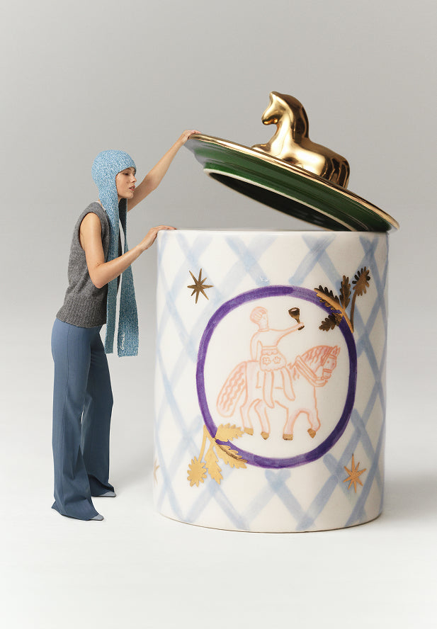 The brand has explored the widespread presence of the horse motif in Ukrainian folk art — from children’s toys and painted tiles to its prominent role in ceramic decoration. Historically, the image of the horse was closely tied to the sun. It was believed that horses pulled the chariot of the sun across the sky or even embodied the sun itself. GUNIA expands this festive symbolism by adding new meanings of unity, power, and joy to the image of the horse.