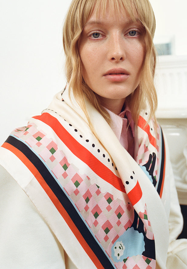 The collection’s visual language draws inspiration from 20th-century Ukrainian rug making. The print designs, featuring birds, flowers, and figures, reinterpret motifs found in traditional rugs from the Kyiv, Poltava, Vinnytsia, and Kamianets regions. The botanical elements originate from 19th-century carved tiles from Poltava and Cherkasy. The Tree of Life, an archetypal symbol of Ukrainian culture that contains a vision of the cosmic order, harmony, and the deep connection between humanity and nature, lies at the heart of the collection. Its universal concept transcends seasons, years, and centuries.