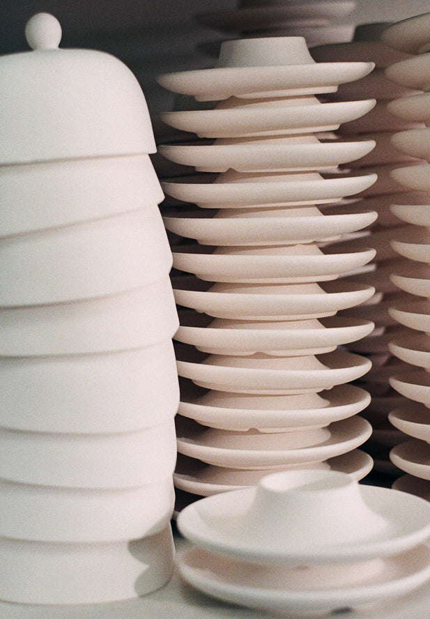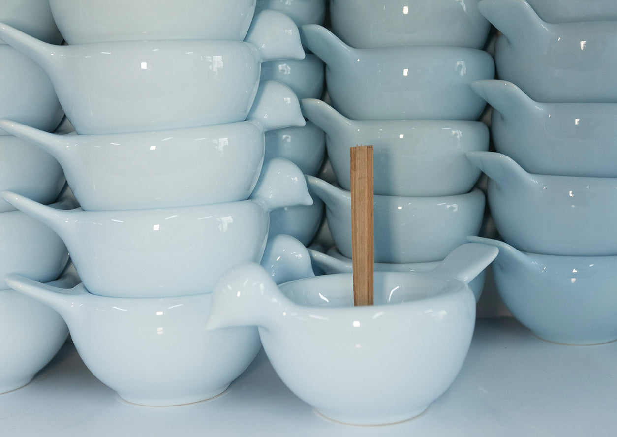 The painted piece is coated with glaze and undergoes a second firing. Gilding is the final touch that completes the design of the object. The third and final firing lasts five hours. Each ceramic item requires over 20 stages of manual work — created to become a part of modern heritage.