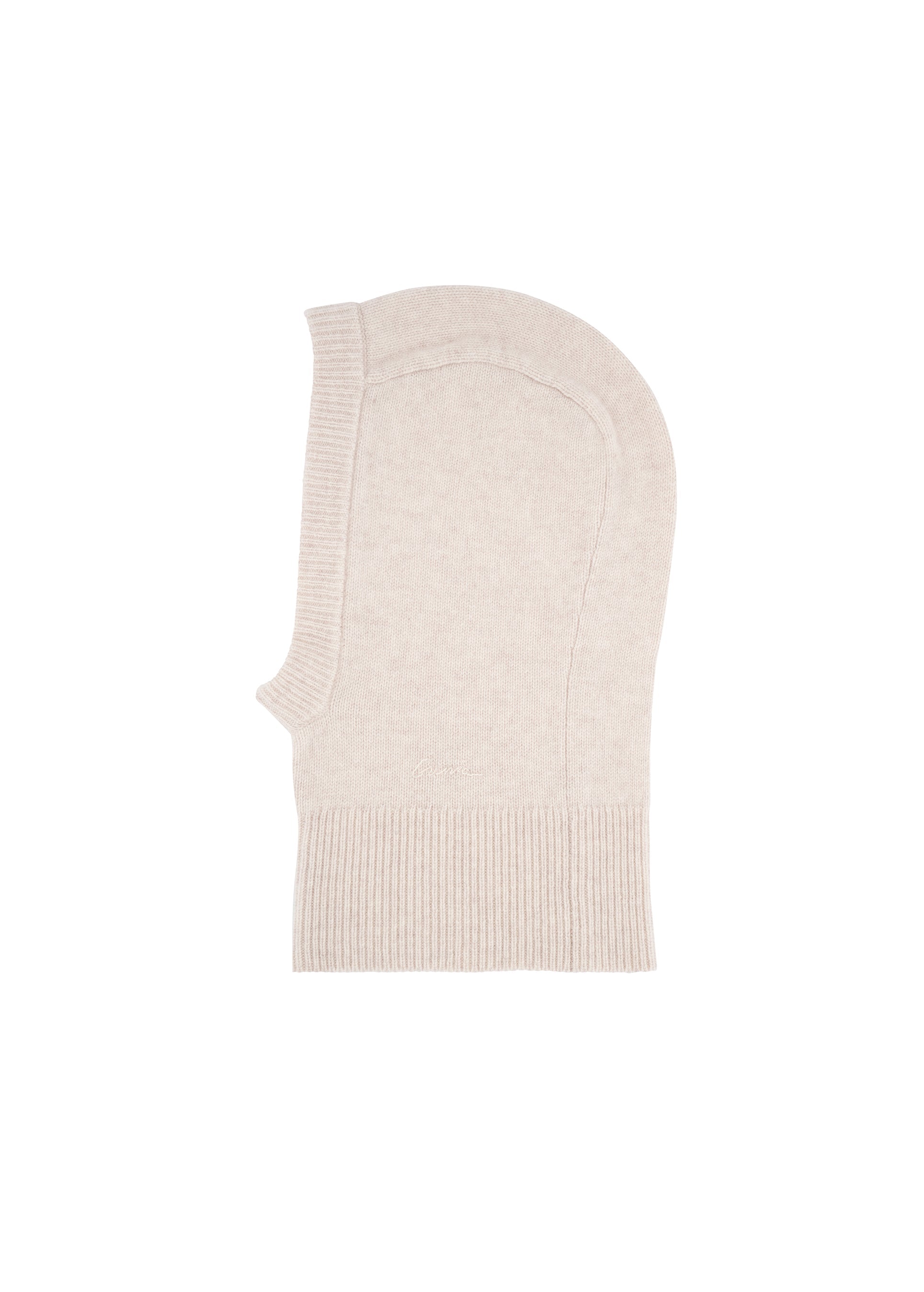 GUNIA Wool-Cashmere Balaclava in Milk. Ultrasoft yarn, handcrafted embroidery. Knitted from a fine wool-cashmere blend. Use it as an equally versatile and distinctive accessory. Choose it as a gift that captures the warmth of sentiment, material, and the meticulous craftsmanship of GUNIA’s artisans.