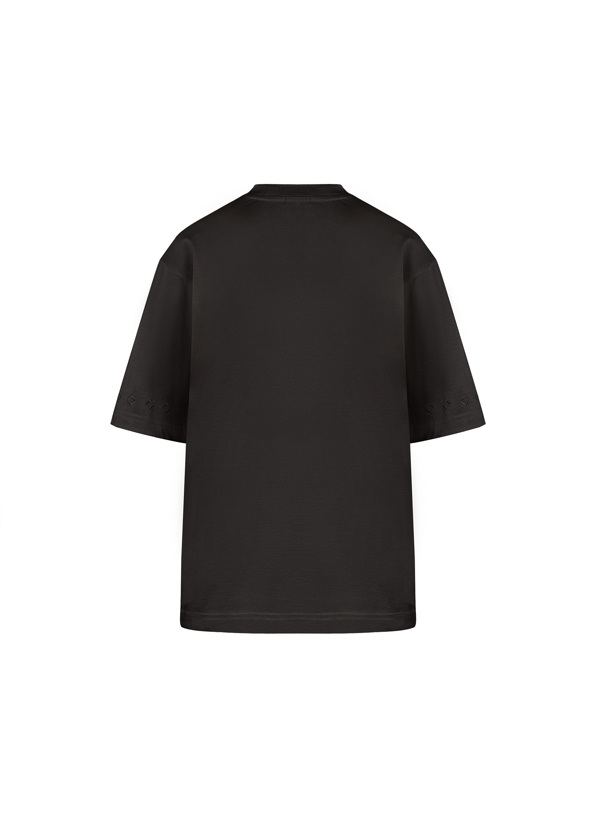 MALVA cotton t-shirt. Straight loose silhouette, crew neck, symmetrical decorative arrangement. The technique and design of the ornament are inspired by the paper artworks known as vytynanky, created by the Hutsul artist and writer Paraska-Plytka Horytsvit.
