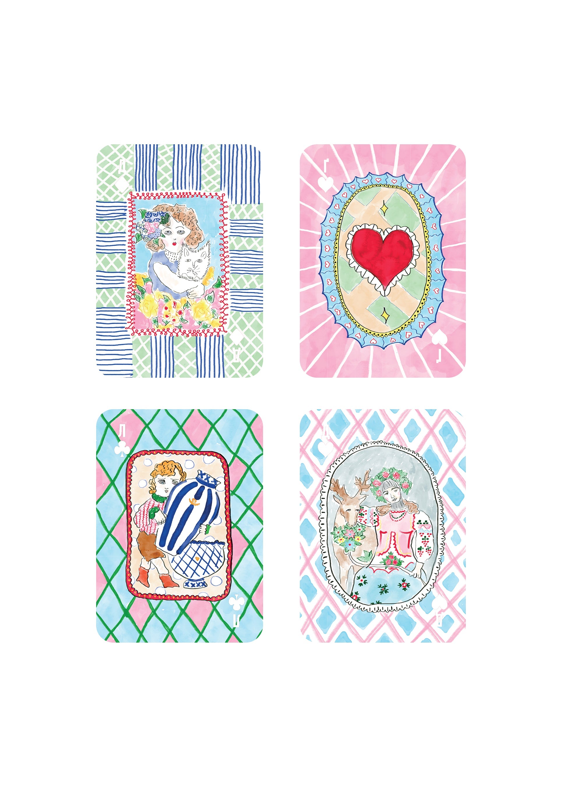 Familiar characters adapted to Ukrainian culture appear in new guises: the Ace is called the Master, the King and the Queen are depicted as Sirs and Maidens. Instead of Knaves we have Youngsters, and the Joker appears as a Jester.
