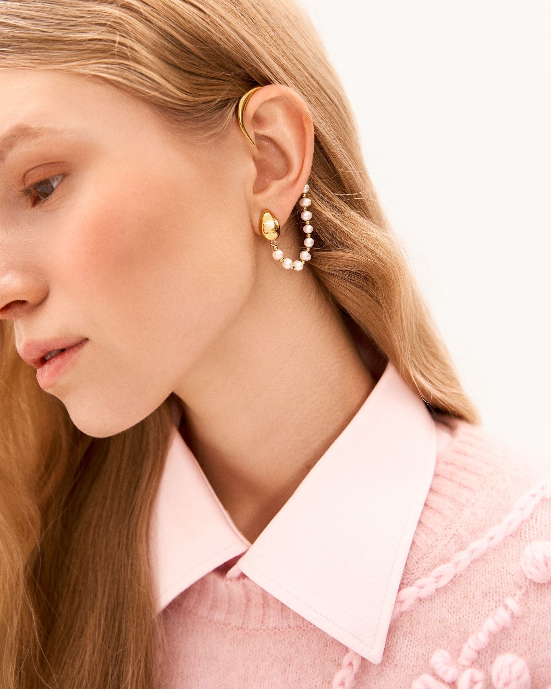 Tyras Pearl Ear Cuff. The jewelry design is inspired by an animalistic gold ring from the 3rd century BC from the city of Tyras and a glass necklace from the 19th century from the Ivano-Frankivsk region. The ear cuff can be worn as a standalone item or easily paired with other GUNIA earrings. Hand-crafted.