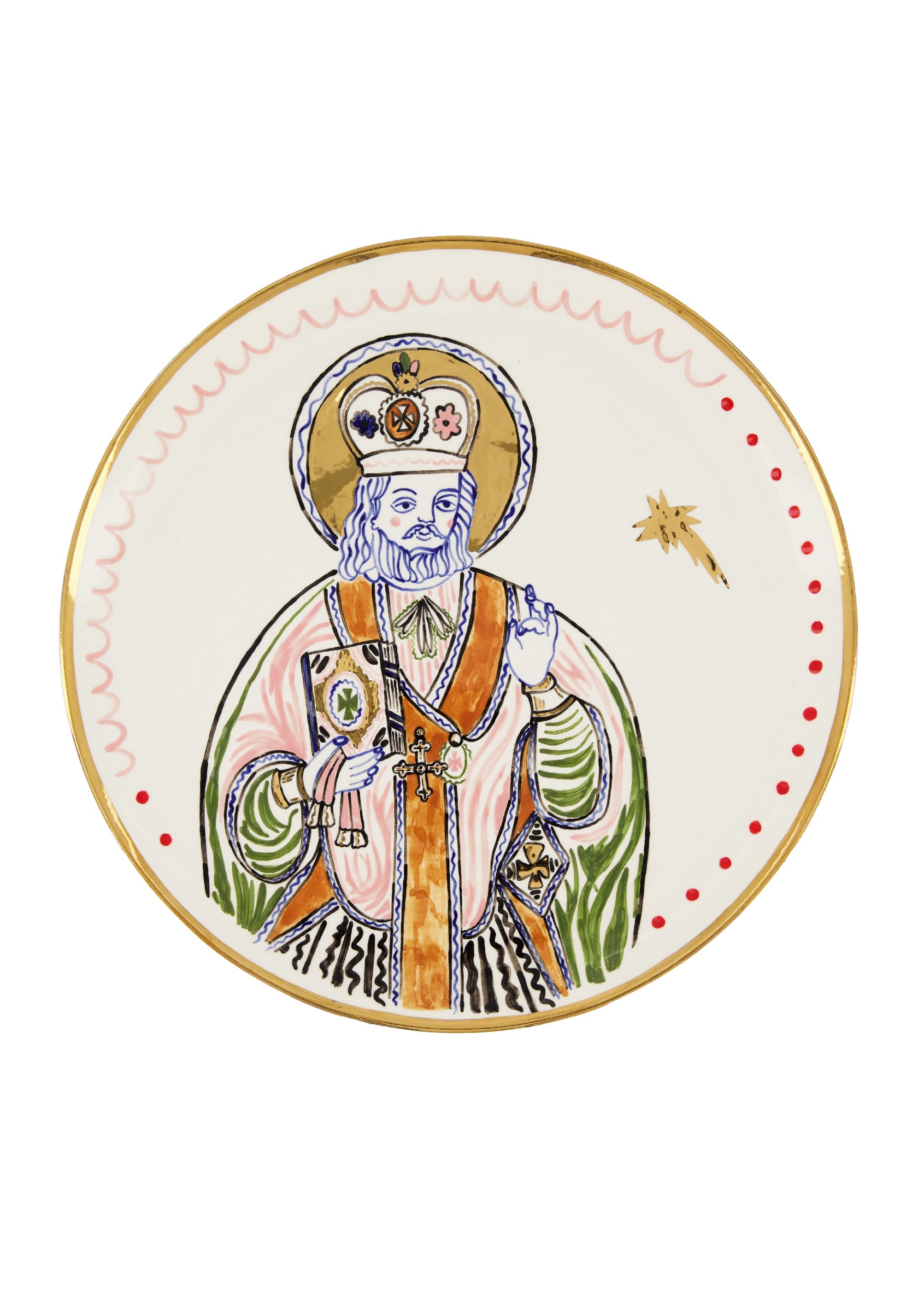 Ceramic plate with the image of Saint Nicolas inspired by the XIXc glass icon of the Carpathian region.