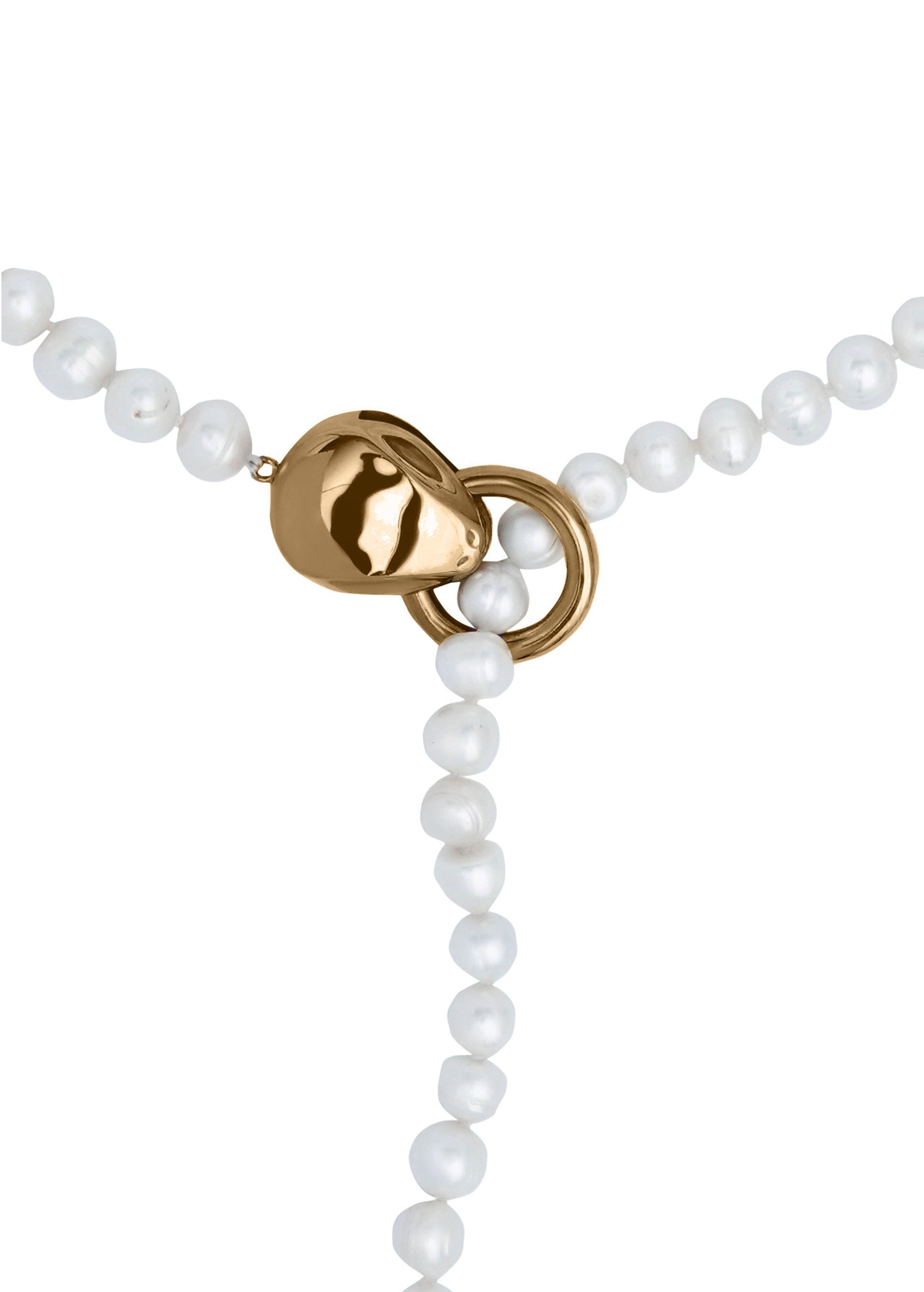 Tyras White Pearl Necklace. The jewelry design is inspired by an animalistic gold ring from the 3rd century BC from the city of Tyras, a chest chain from the 11th to 13th centuries, and a glass necklace from the 19th century from the Ivano-Frankivsk region. The necklace will be a collectible gift, a statement piece that complements both a basic and a special outfit. Hand-crafted.