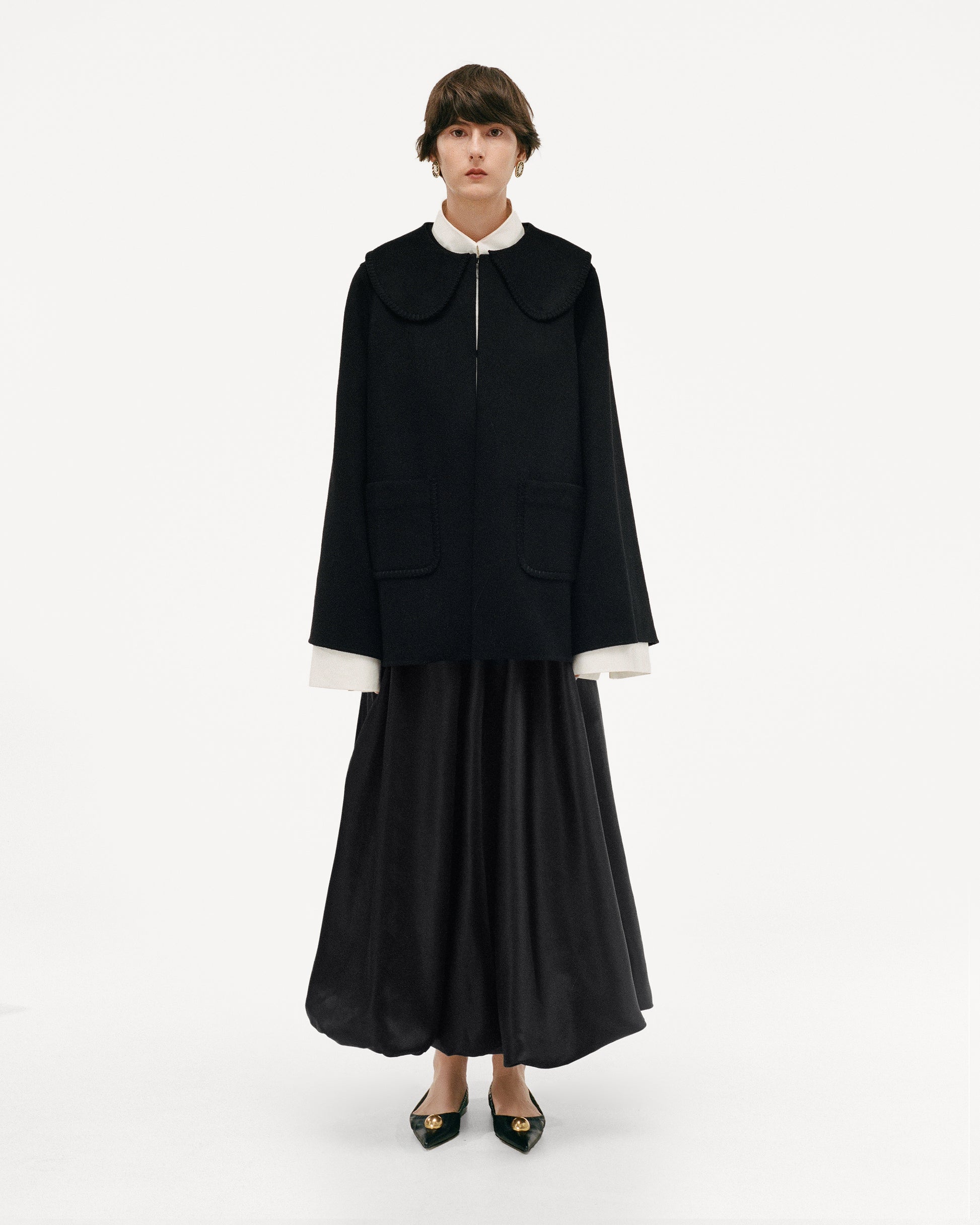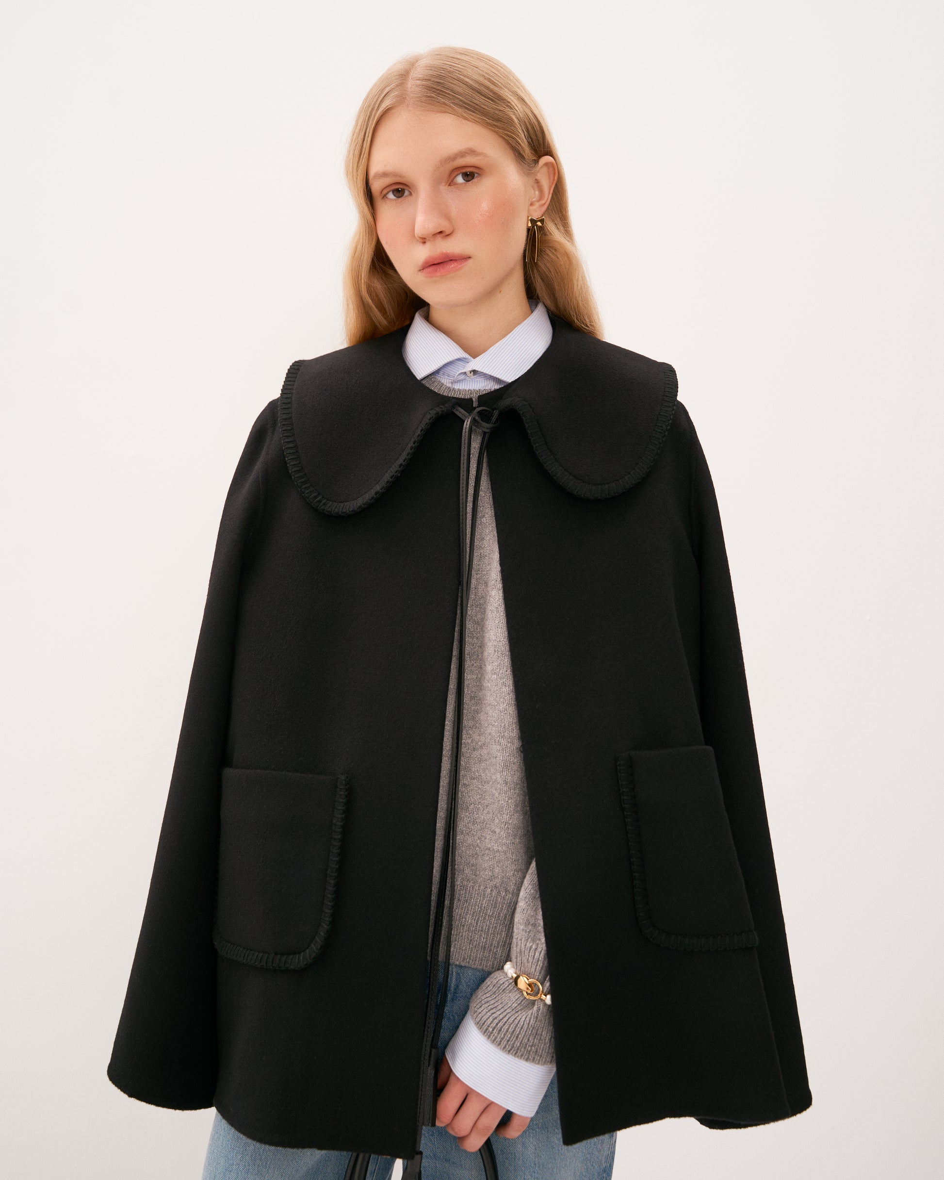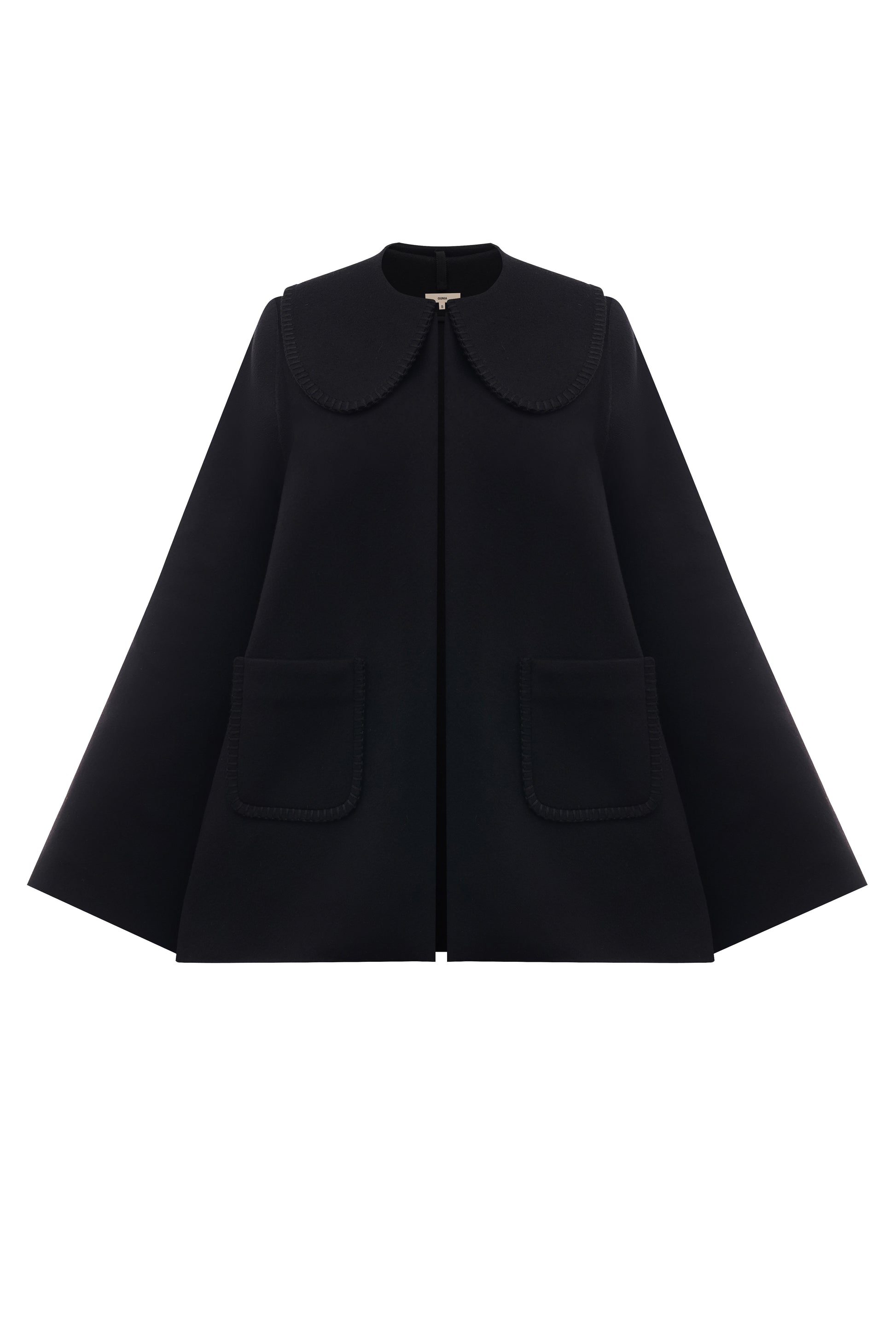 Solomiia Coat. Loose silhouette, wide sleeves, the removable collar is tied in a bow. The coat is made entirely by hand from a wool and cashmere blend. It takes up to 16 hours to create one coat.