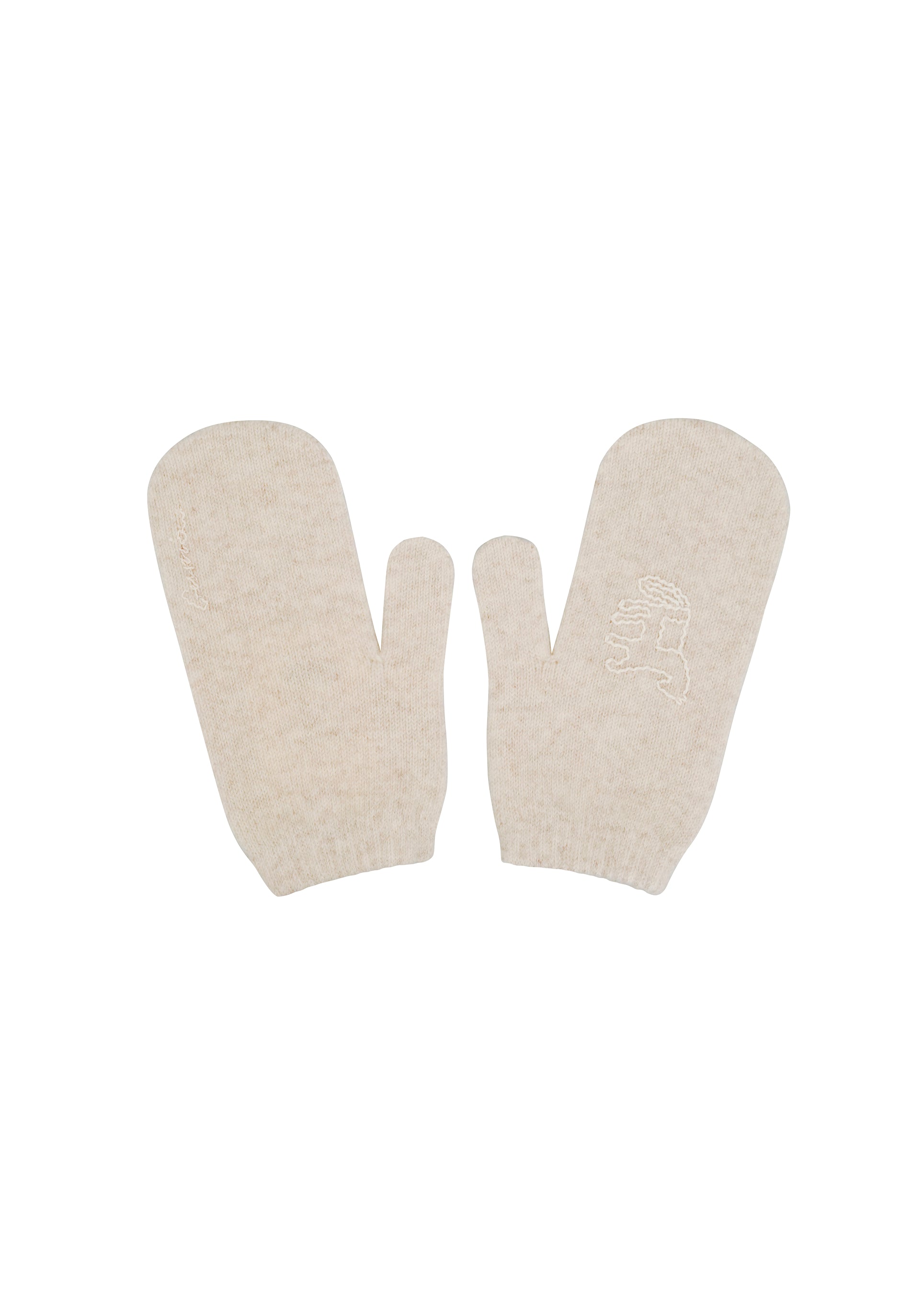 Konyk Wool-Cashmere Mittens in Milk. Ultrasoft yarn, handcrafted embroidery. Knitted from a fine wool-cashmere blend, the mittens are embellished with the brand’s logo and a naive horse motif. Use it as an equally versatile and distinctive accessory. Choose it as a gift that captures the warmth of sentiment, material, and the meticulous craftsmanship of GUNIA’s artisans.