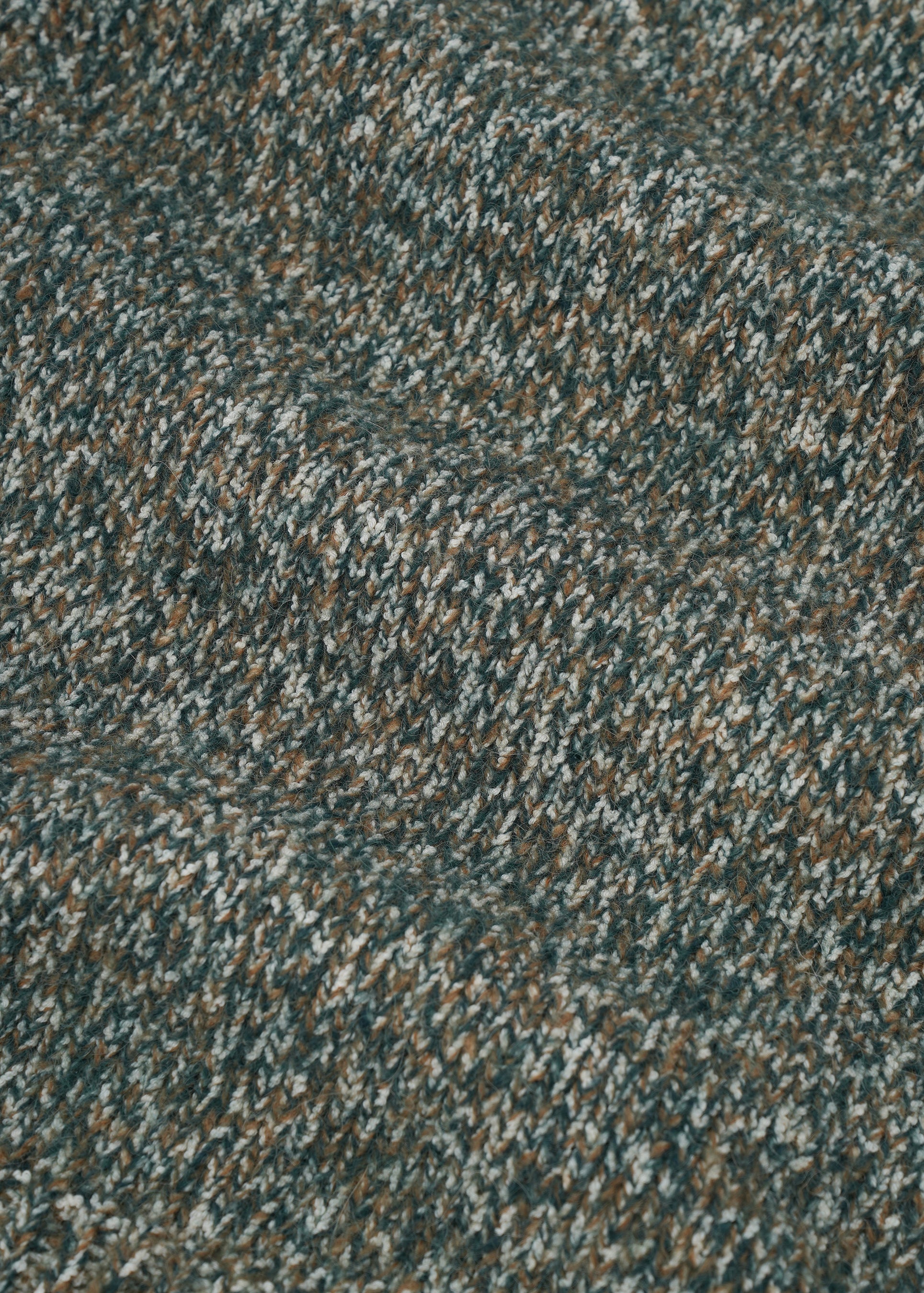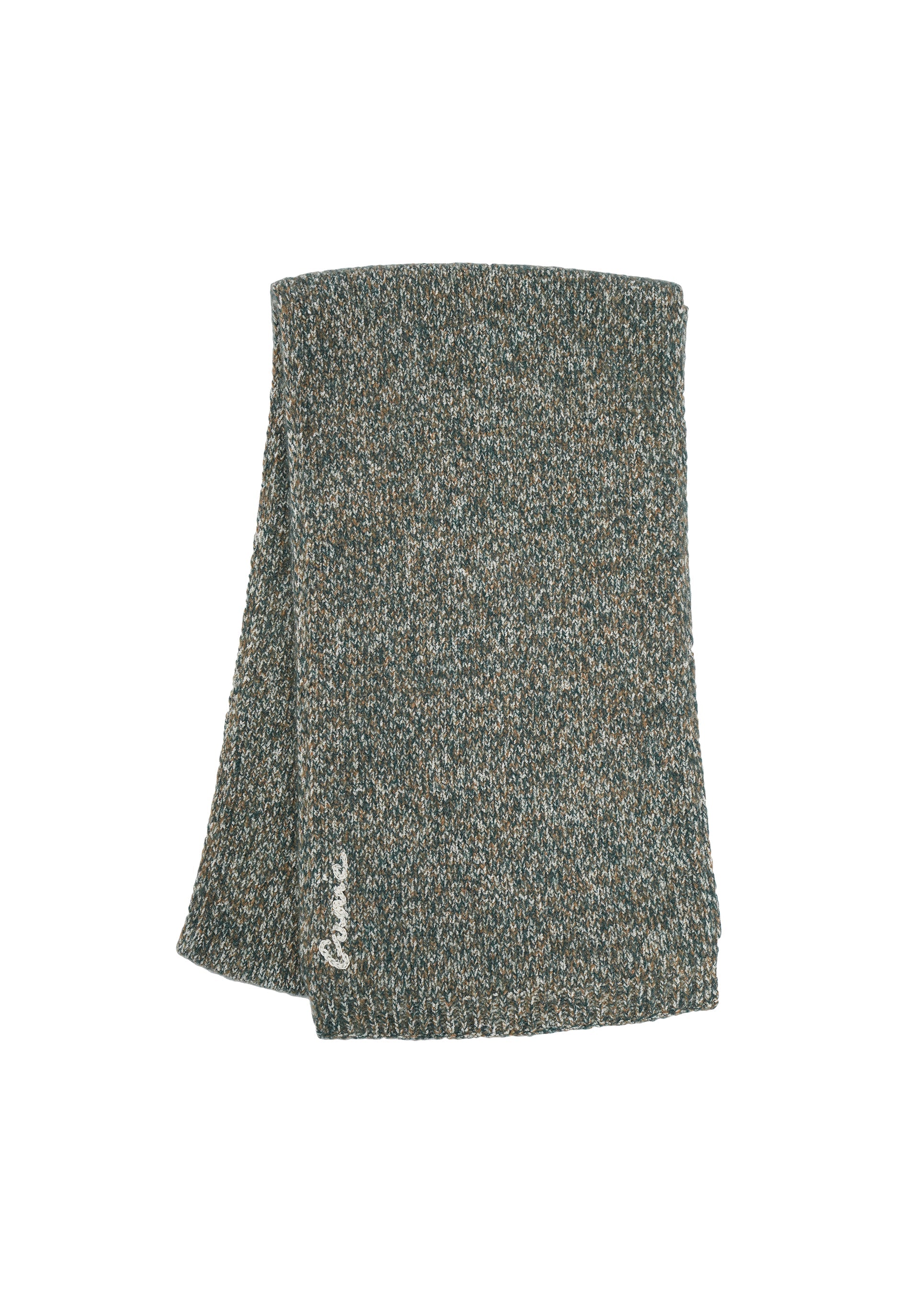GUNIA Scarf in Green. Knitted from soft mélange yarn, this wide, long scarf is embellished with the brand’s hand-embroidered logo. Use it as an equally versatile and distinctive accessory. Choose it as a gift that captures the warmth of sentiment, material, and the meticulous craftsmanship of GUNIA’s artisans.