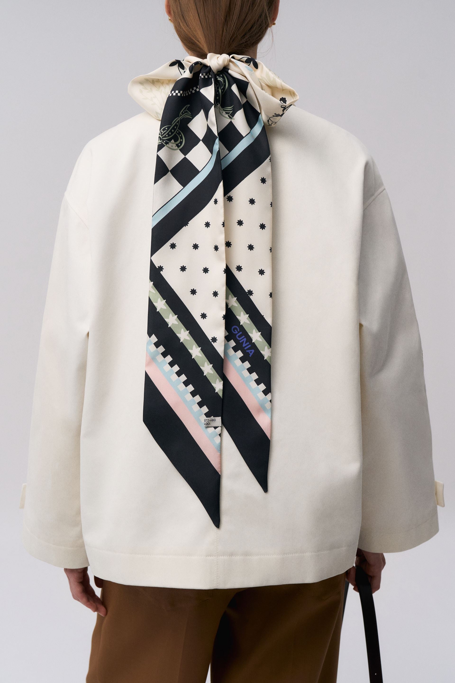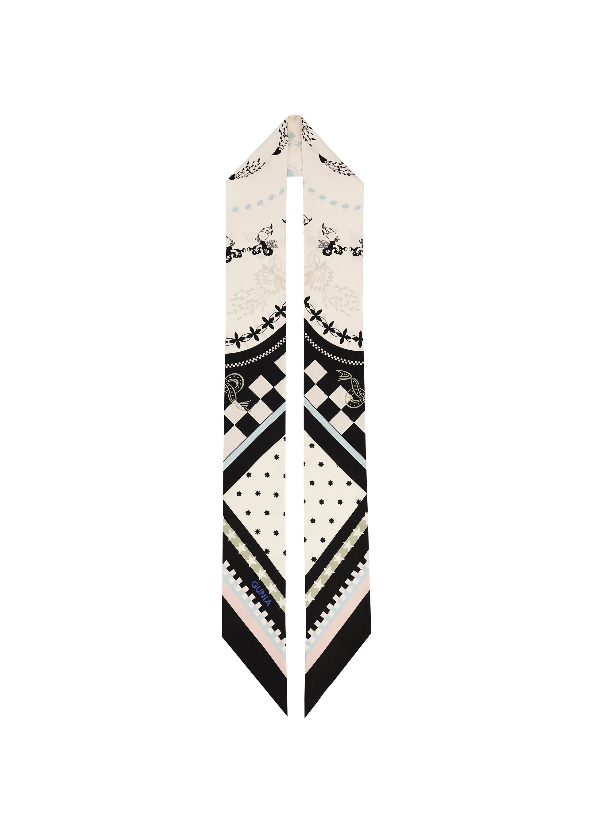 A versatile accessory that can become a collectible, heirloom piece. The print is inspired by naïve embroidered towels from the 20th century, including pieces from GUNIA’s own collection, which the brand curates to preserve and promote traditional embroidery. Use it as an accent in everyday or festive outfits, or choose it as a memorable gift.