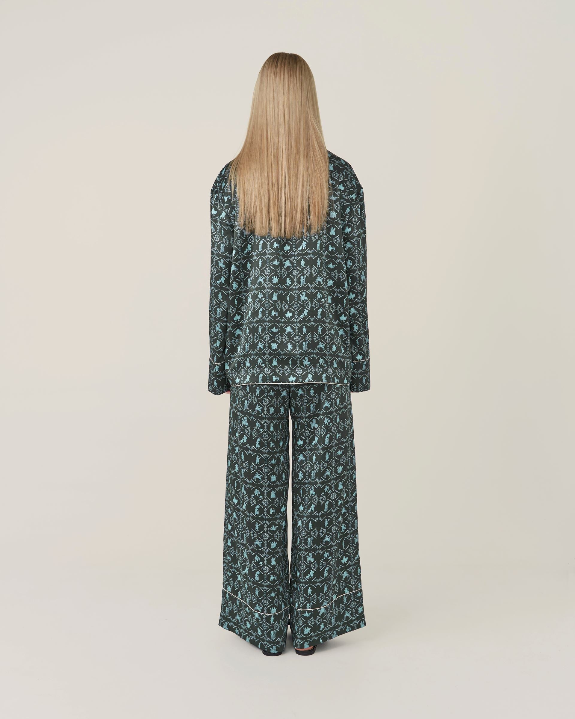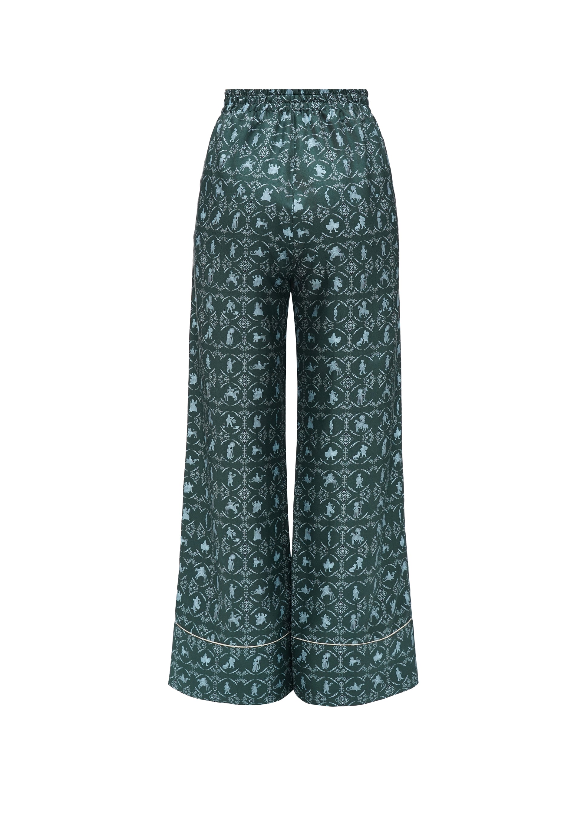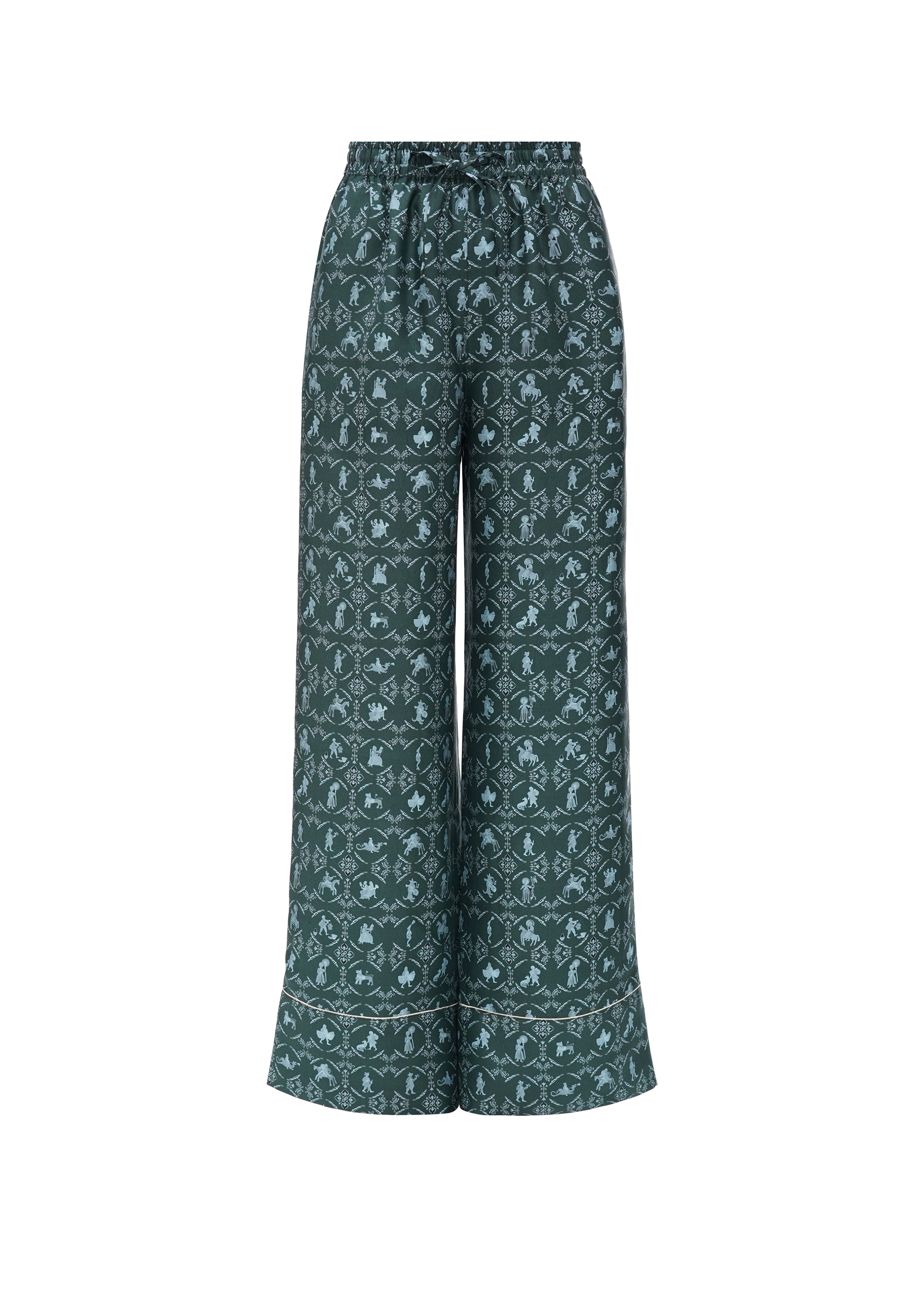 Silk pants 'Vechornytsi'. Wide, loose-fit silhouette. The unique pattern is designed based on the ceramic tiles, which adorn the ancient stove in the Olesko Castle. Wear it at home or style it with a matching shirt as a laid-back yet chic street set.