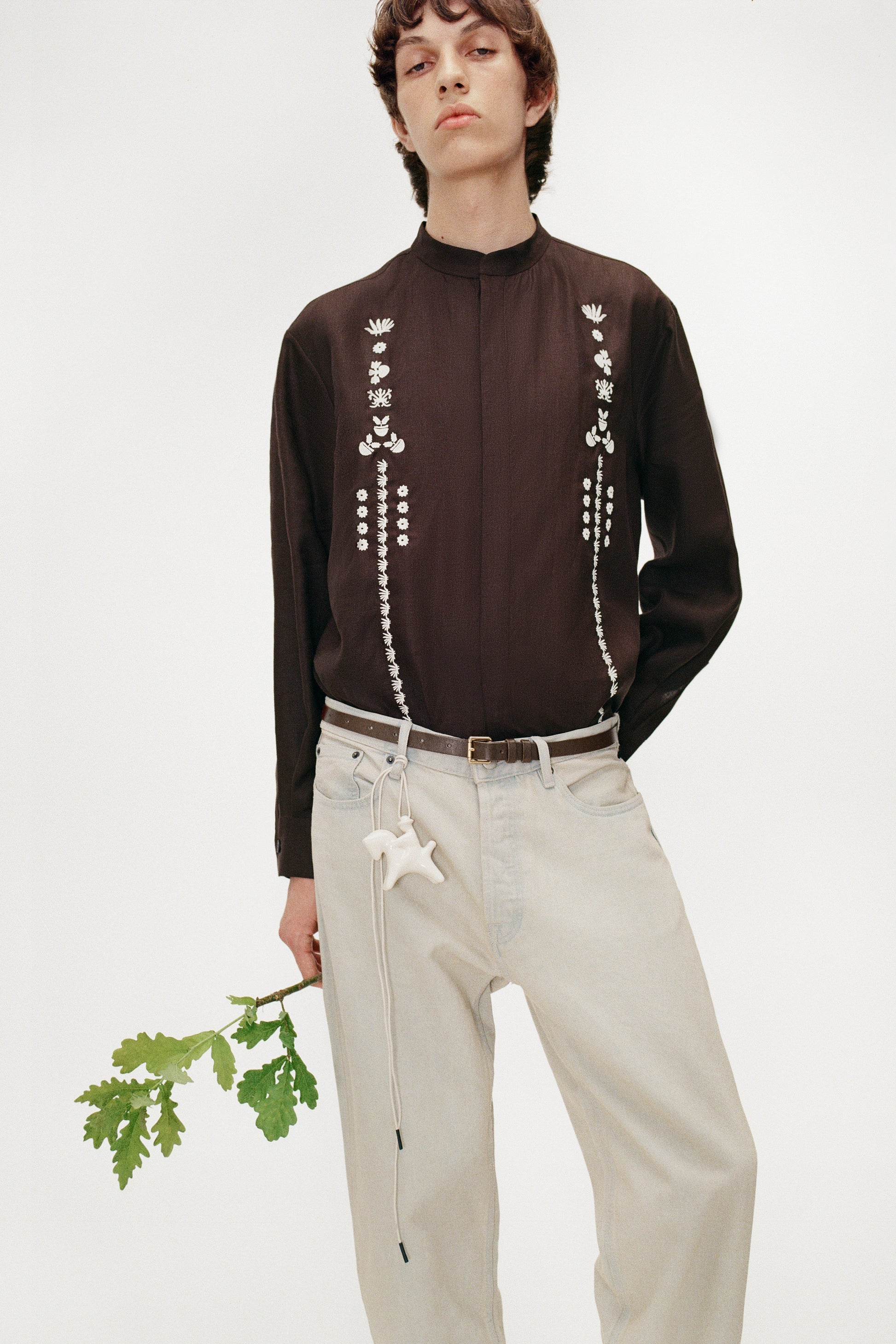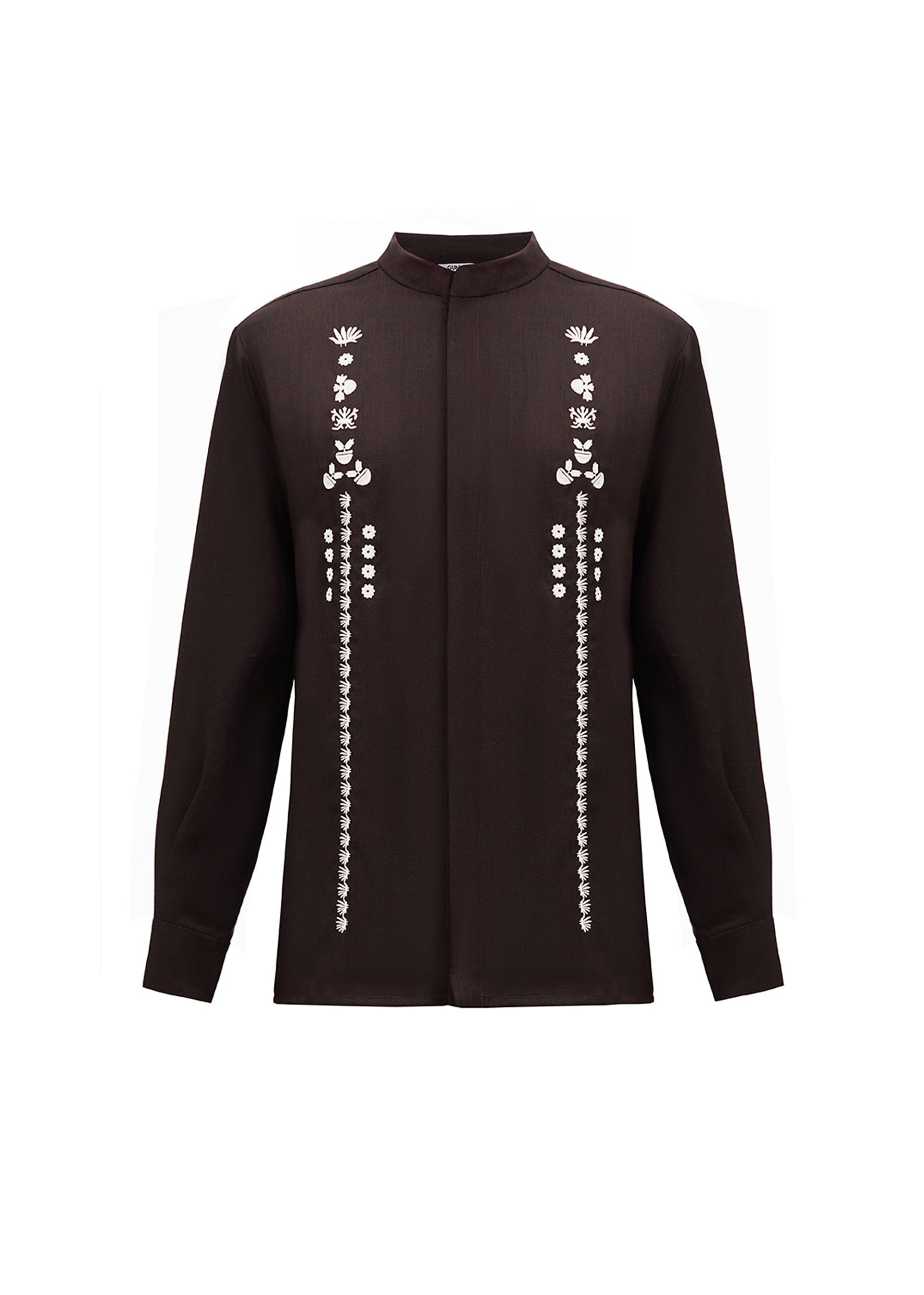 Straight silhouette, wide cuffs, and contrasting decorative accents with finished edges. The embroidery patterns are inspired by traditional towels from the Dnipro region, Kyiv and Sumy areas (18th–20th centuries), as well as 17th–18th century Cossack nobility embroidery. This shirt can be worn as part of both everyday and festive attire.